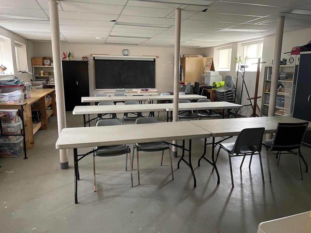 23 x 30 foot space with folding tables and chairs